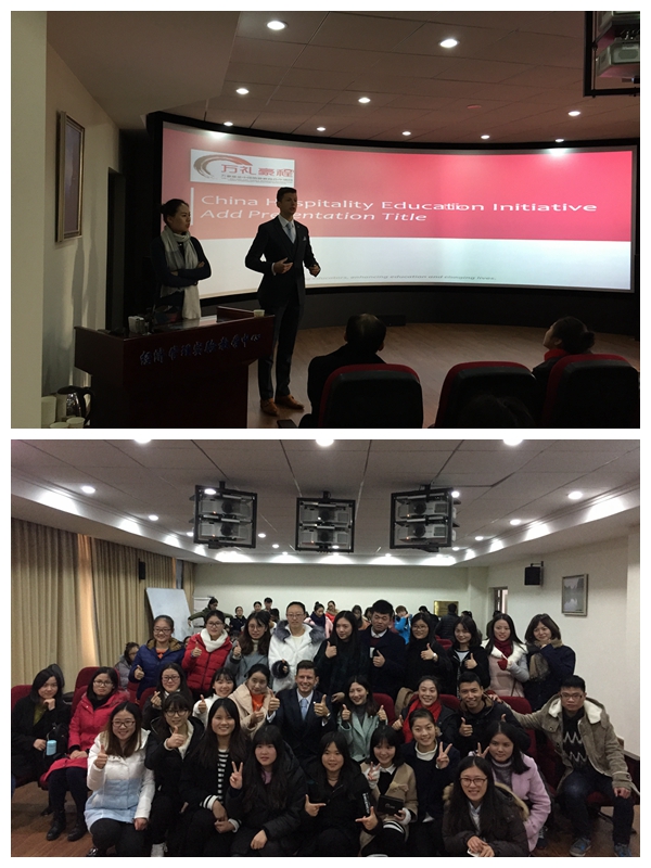 11月24日下午2點(diǎn),上海JW萬(wàn)豪酒店餐飲總監(jiān)Wouter Aarts和萬(wàn)豪基金會(huì)萬(wàn)禮豪程項(xiàng)目副經(jīng)理Caron Chen應(yīng)邀來(lái)我院開(kāi)展了題為“國(guó)際酒店餐飲部運(yùn)營(yíng)與職業(yè)發(fā)展”的講座。本次講座由旅游管理系主任羅偉副教授主持,胡燦偉、馬彥、羅莎老師及70余名旅游管理本科生參加了此次講座。