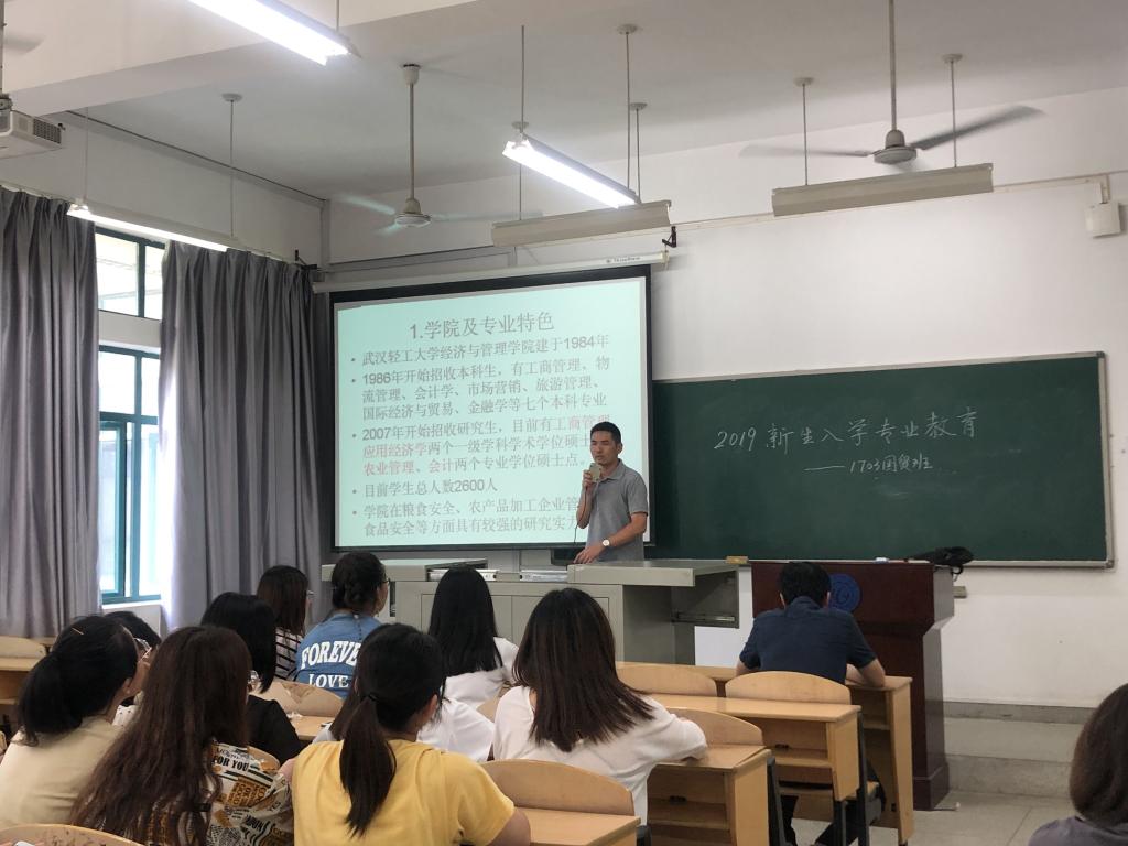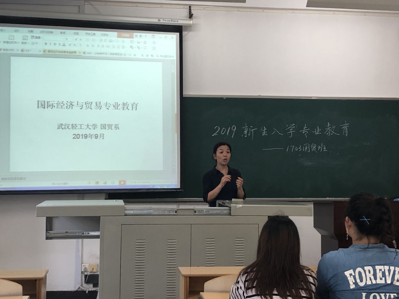 王老師首先介紹了貿(mào)易新形態(tài)下我校國際經(jīng)濟與貿(mào)易專業(yè)的特色,培養(yǎng)目標,教學計劃,就業(yè)及考研方向,并提出要努力提高個人的英語聽說能力及專業(yè)素養(yǎng),接著班主任余紅娟老師介紹了國貿(mào)專業(yè)的主干課程及相應的學習方法,并勉勵同學們珍惜大學的美好時光。最后同學們提出了專業(yè)學習及生活上的問題,王老師和余老師都進行了詳細解答。