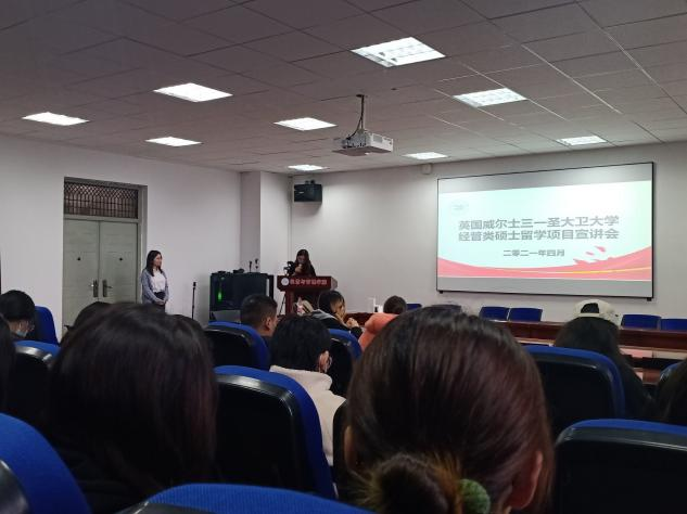 最美人間四月天,東風(fēng)送雨潤綿綿。為進(jìn)一步拓寬學(xué)生求學(xué)資源,開闊學(xué)子國際視野,4月1號下午,管理學(xué)院特邀英國威爾士三一圣大衛(wèi)大學(xué)東亞辦公室項(xiàng)目主管胡安儀老師,在文管樓421會(huì)議室舉行了經(jīng)管類碩士留學(xué)項(xiàng)目宣講會(huì)。本次會(huì)議由18級輔導(dǎo)員陳星園老師主持。