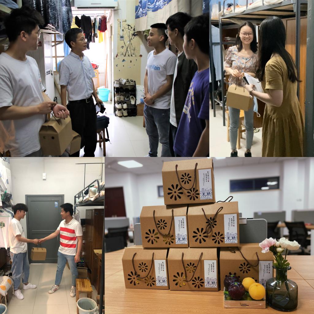 桃李滿天下,春暉遍四方。5月25日,管理學(xué)院黨委書(shū)記蔡波、副書(shū)記廖前蘭、分團(tuán)委書(shū)記胡靜與畢業(yè)班輔導(dǎo)員包雪、劉暢老師走進(jìn)畢業(yè)生寢室,為即將畢業(yè)的21屆學(xué)生贈(zèng)送畢業(yè)禮物。這份由新鮮的桃李組成的特殊禮品,飽含著學(xué)院對(duì)畢業(yè)生的濃濃深情。