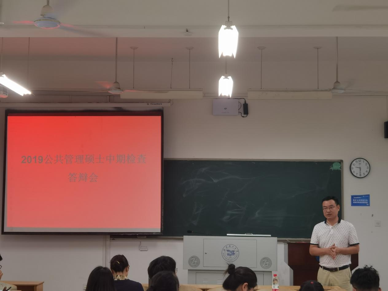 2021年6月24日上午,根據(jù)校研究生處2021屆碩士研究生學(xué)位論文工作安排,管理學(xué)院在文管樓310教室組織開展了2019級公共管理專業(yè)研究生畢業(yè)論文中期檢查答辯會。黃猛副院長通報了學(xué)位論文中期檢查和學(xué)位點合格評估工作總體安排,白虹、陶麗萍、張國超、俞鈺凡、李技文5位指導(dǎo)老師擔(dān)任評委。2019級公共管理研究生參加答辯,2020級公共管理研究生參與了觀摩學(xué)習(xí)。