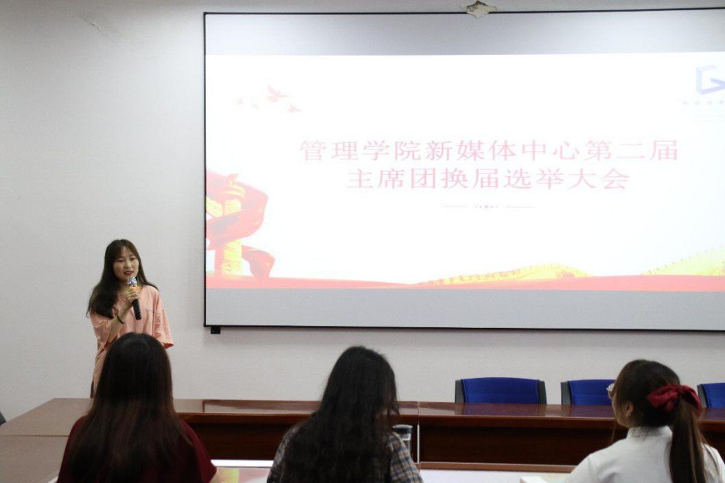6月9日,武漢輕工大學(xué)管理學(xué)院新媒體中心第二屆主席團(tuán)換屆選舉大會(huì)于文管樓421召開。管理學(xué)院新媒體中心指導(dǎo)老師陳星園,新媒體中心主任戴安娜以及各部門部長(zhǎng)與會(huì)。會(huì)議由新媒體中心主席團(tuán)秘書長(zhǎng)郭文靜主持。