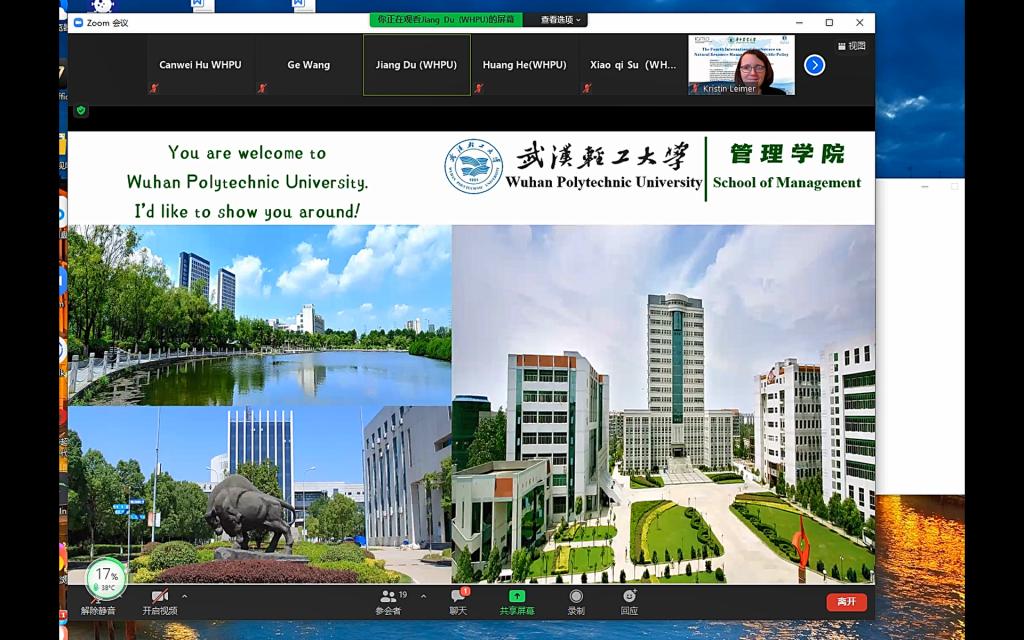 本次在線研討會,吸引了來自美國、德國、荷蘭、愛爾蘭、中國等眾多國內(nèi)外相關學科領域的專家學者、博士生、碩士生參加,我校相關專業(yè)的研究生也進入會場,聆聽專家學者的交流報告。在成果匯報完畢后,老師也借此機會,結合PPT展示,向參會的國內(nèi)外專家學者簡要介紹了武漢輕工大學,也歡迎各位同仁來我校進行學術交流,在相關學科領域共同探索與進步!