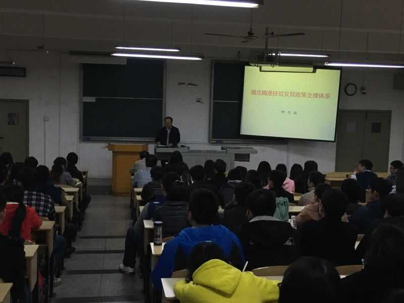 柳長毅老師此次的演講主題為——湖北精準(zhǔn)扶貧及其政策支撐體系。在演講的一開始柳長毅老師并沒有直接進入主題,而是循序漸進的從自己的經(jīng)歷講起,慢慢的滲透到今天的主體當(dāng)中,從柳長毅老師的講話中了解到他自我的一些經(jīng)歷,從心血管專業(yè)畢業(yè)的學(xué)生慢慢走到今天的湖北省扶貧辦副主任。并在一開始就呼吁現(xiàn)在的大學(xué)生要從基層開始,建議大學(xué)生去一線,一步步踏實做起。