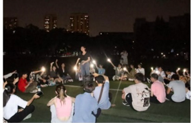 心中有皎月,惟愿共團(tuán)圓。操場(chǎng)上,同學(xué)們圍坐在一起,以連線形式與家人互通電話,互道節(jié)日快樂(lè)。電話的一端是熟悉的家人,身邊是新認(rèn)識(shí)的朋友,小家與大家的融合,形成真正的大團(tuán)圓。