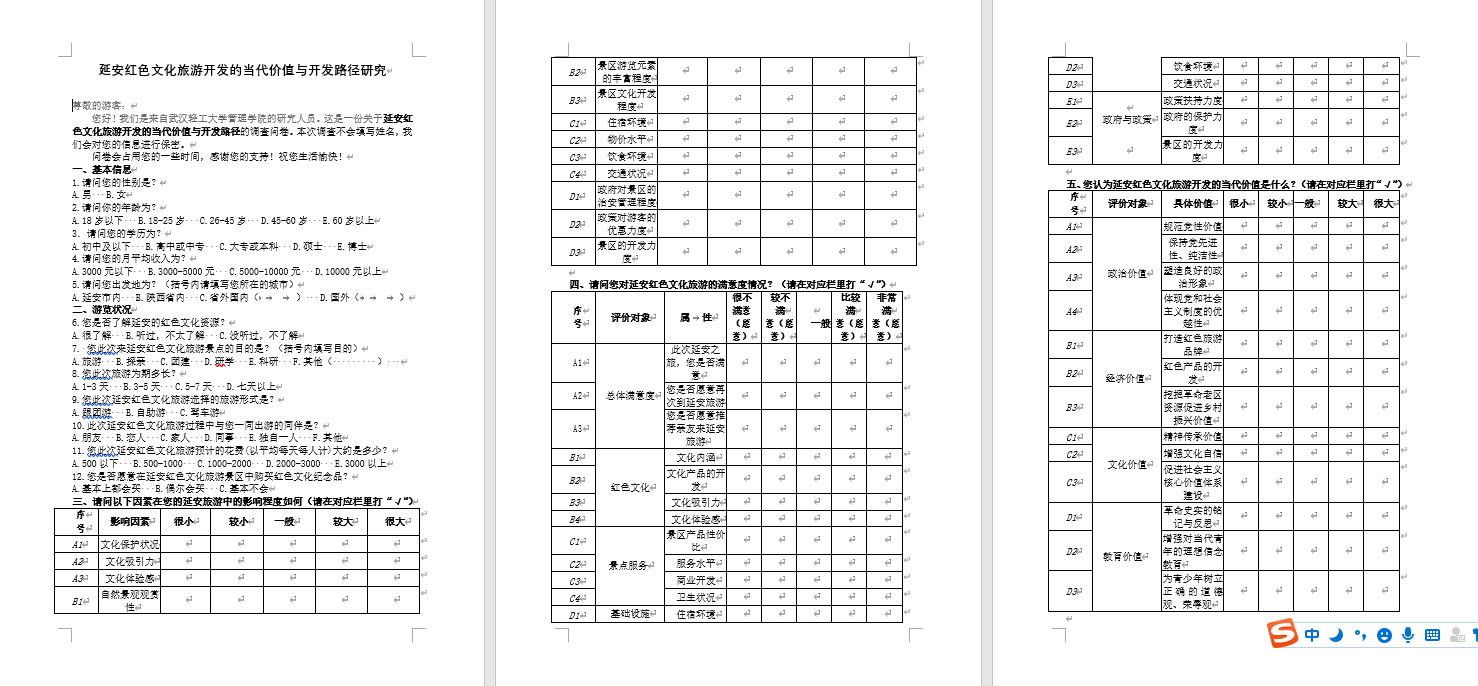 在成員的共同努力下,團(tuán)隊最終共計收集問卷210份,其中有效問卷207份,總體情況良好,符合調(diào)查要求且結(jié)果真實有效。借助spss數(shù)據(jù)分析軟件對207份有效問卷進(jìn)行提取、篩選、整合后,團(tuán)隊成員了解到了大眾對于延安紅色文旅產(chǎn)業(yè)各方面的認(rèn)知與滿意度的普遍性情況。總體而言,延安市前期紅色旅游聚集區(qū)項目具有一定成效,推動了紅色旅游從說教式、灌輸式向參與式、體驗式轉(zhuǎn)變,對于游客的吸引力增強(qiáng)。但與此同時,延安地區(qū)的紅色文旅業(yè)也存在紅色文化資源展現(xiàn)形式單一、紅色旅游產(chǎn)品結(jié)構(gòu)存在組合不合理、利用率低、附加值低且缺乏相應(yīng)的市場導(dǎo)向性等問題。