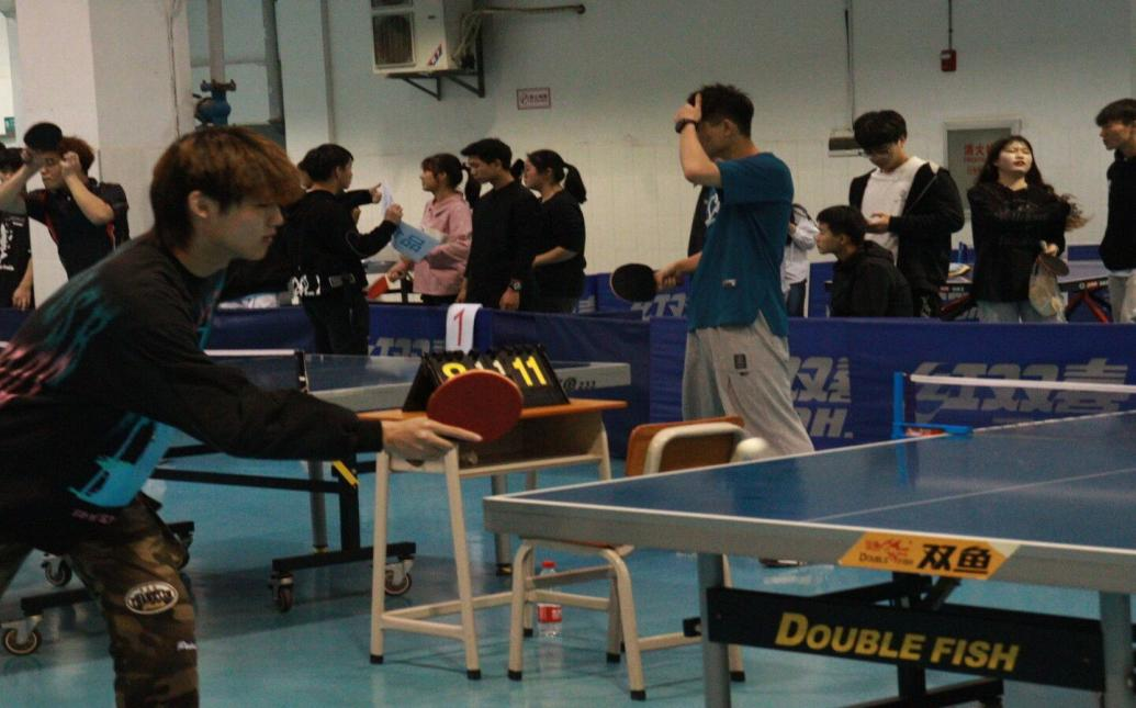 墨綠色的乒乓球臺上,揮灑著運(yùn)動員所洋溢的汗水。賽場上,隨著裁判的哨音落下,運(yùn)動員們不斷變換著發(fā)球,迂回著戰(zhàn)術(shù),巧妙攻防,在觀眾一聲聲響徹體育館的喝彩聲中砍下得分。“乒乒乓乓”許久未絕,當(dāng)乒乓球在球拍上摩擦的剎那,碰撞于桌面上,飛擲于對手的衣襟前,裁判的一記抬手,管院得分!霎時,全場盡是為運(yùn)動員的歡呼之聲。