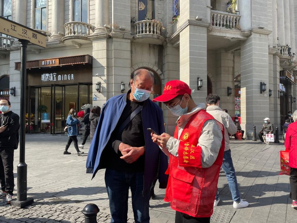 “先生您好,疫情條件下請(qǐng)將您的口罩帶好!”為引導(dǎo)游客樹立文明旅游價(jià)值觀、讓文明根植于每個(gè)人的內(nèi)心。12月4日,在江漢團(tuán)區(qū)委的組織下,志愿者們前往江漢路步行街開展文明引導(dǎo)志愿服務(wù)活動(dòng),為旅客和行人提供信息查詢和指路服務(wù),并在交通路口提醒過往車輛、行人遵守交通規(guī)則。同時(shí),志愿者還對(duì)景區(qū)環(huán)境進(jìn)行清潔打掃,對(duì)亂丟垃圾等不文明行為進(jìn)行提示勸阻。