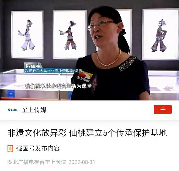 其中,“光影尋跡隊(duì)”暑期社會(huì)實(shí)踐團(tuán)隊(duì)在陶麗萍教授的帶領(lǐng)下,2022年8月23日至25日奔赴荊楚文化古城仙桃市,圍繞“仙桃特色文化產(chǎn)業(yè)助力鄉(xiāng)村振興”調(diào)研主題開展了為期三天的實(shí)地考察活動(dòng)。活動(dòng)期間,團(tuán)隊(duì)精心策劃,周密組織,科學(xué)分工,對(duì)仙桃市文旅局領(lǐng)導(dǎo)、文化企業(yè)負(fù)責(zé)人和國家級(jí)非遺傳承人進(jìn)行了深度訪談,并先后前往江漢皮影博物館、麥稈畫省級(jí)傳承示范基地、沔街、江漢文化創(chuàng)意產(chǎn)業(yè)園、沔陽小鎮(zhèn)等重要文旅企業(yè)開展實(shí)地考察和調(diào)研。通過實(shí)踐,讓學(xué)生親身感知仙桃豐富的歷史文化資源,體驗(yàn)其特色文化產(chǎn)業(yè)助推鄉(xiāng)村振興,特別是文化振興方面的發(fā)展成就和成功經(jīng)驗(yàn),不僅豐富和創(chuàng)新了教學(xué)內(nèi)容與育人方式,更提升了專業(yè)教學(xué)的溫度與質(zhì)量,增強(qiáng)了學(xué)生作為文化守護(hù)人的使命感和責(zé)任感。