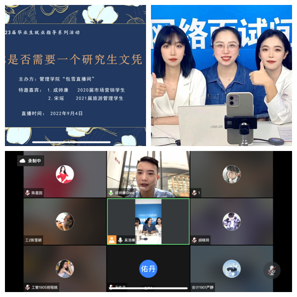 為扎實(shí)推進(jìn)2023屆畢業(yè)生就業(yè)指導(dǎo)工作,進(jìn)一步增強(qiáng)畢業(yè)生職業(yè)規(guī)劃意識(shí),管理學(xué)院“包雪直播間”新學(xué)期首播開(kāi)講。