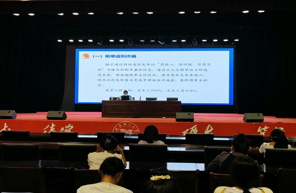 講座中,杜所長主要介紹了電信詐騙的幾種常見類型、作案手法以及如何防范電信詐騙方法。重點(diǎn)對常見的電詐種類進(jìn)行詳細(xì)介紹,提醒學(xué)生對刷單返利詐騙、交友(裸聊)詐騙與冒充客服詐騙三種類型進(jìn)行有效識別與防范。文警官則以兩個“切勿”提醒同學(xué)們提高反詐意識,切勿為他人提供場所放置GOIP等涉嫌詐騙設(shè)備,更不要幫忙安裝以及維護(hù)相關(guān)設(shè)備;切勿參與買、賣、租銀行卡、電話卡,一旦名下兩卡涉案將會被嚴(yán)格管控,嚴(yán)重影響個人生活,告誡同學(xué)們?nèi)羰乔楣?jié)嚴(yán)重,將根據(jù)《中華人民共和國刑法》第二百八十七條之二規(guī)定,幫助信息網(wǎng)絡(luò)犯罪活動罪,處三年以下有期徒刑或者拘役,并處或者單處罰金。
