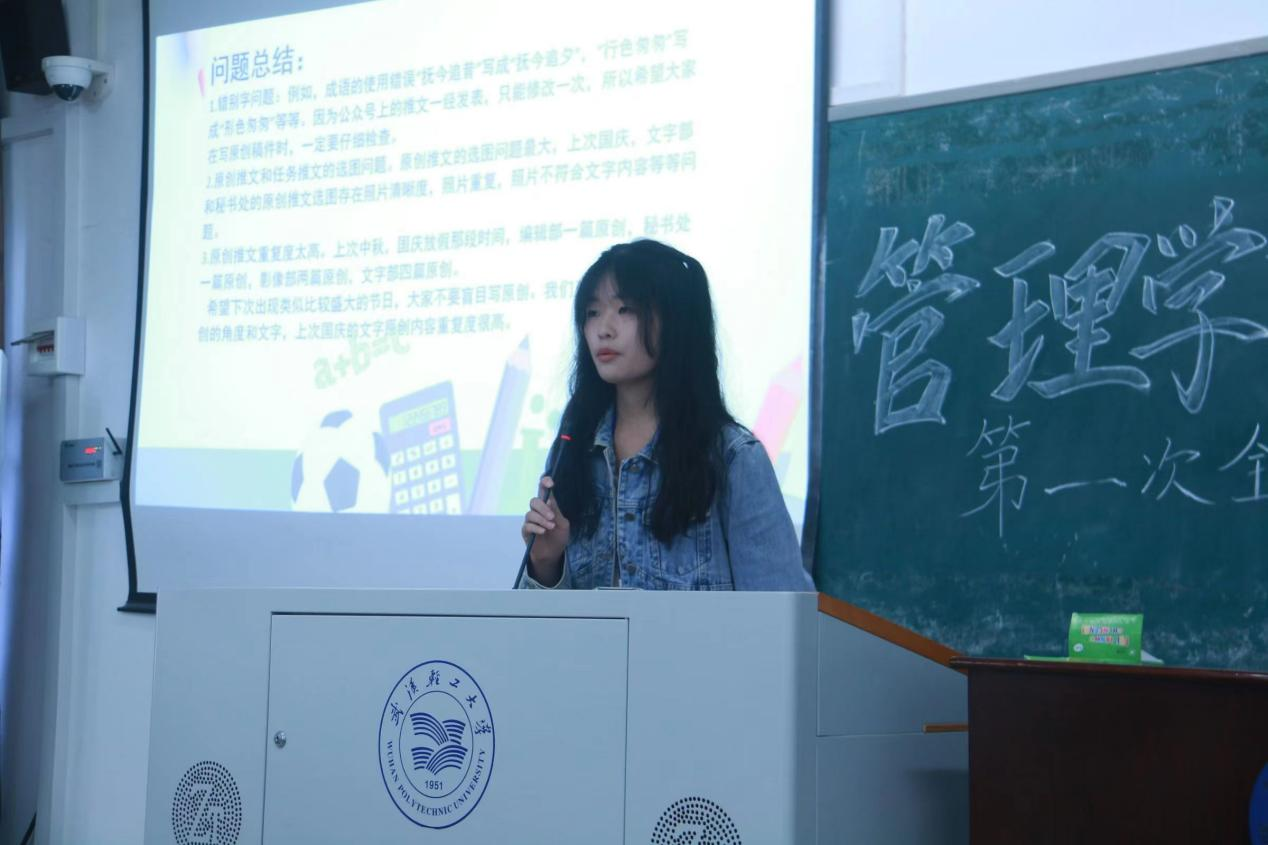 為打造宣傳高地,增強管理學院新媒體中心凝聚力,10月21日下午3點,管理學院新媒體中心在知行樓(文管樓)107教室舉行了第一次全體例會。會議由文字部副部長吳婧婕主持,管理學院新媒體中心主席團、各部門部長及全體成員參與。