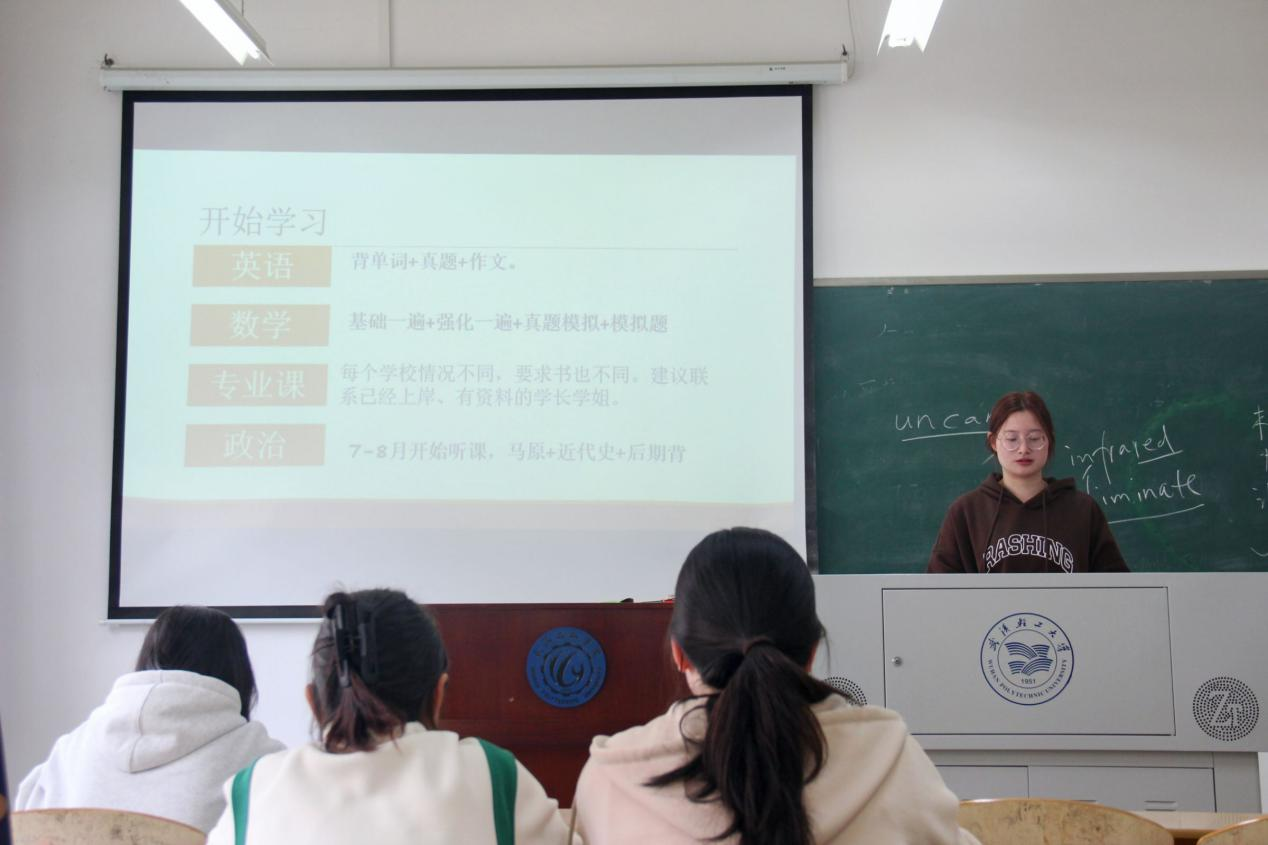 為加強(qiáng)學(xué)風(fēng)建設(shè),提供考研資訊平臺(tái)。4月11日下午2:30,管理學(xué)院分別在基礎(chǔ)樓308,文管樓215舉辦了考研分享講座。講座特別邀請(qǐng)成功上岸的20級(jí)學(xué)姐,分別是上岸武漢工程大學(xué)會(huì)計(jì)專碩的徐金環(huán),上岸福州大學(xué)物流管理學(xué)碩的熊佩佩分享經(jīng)驗(yàn)。