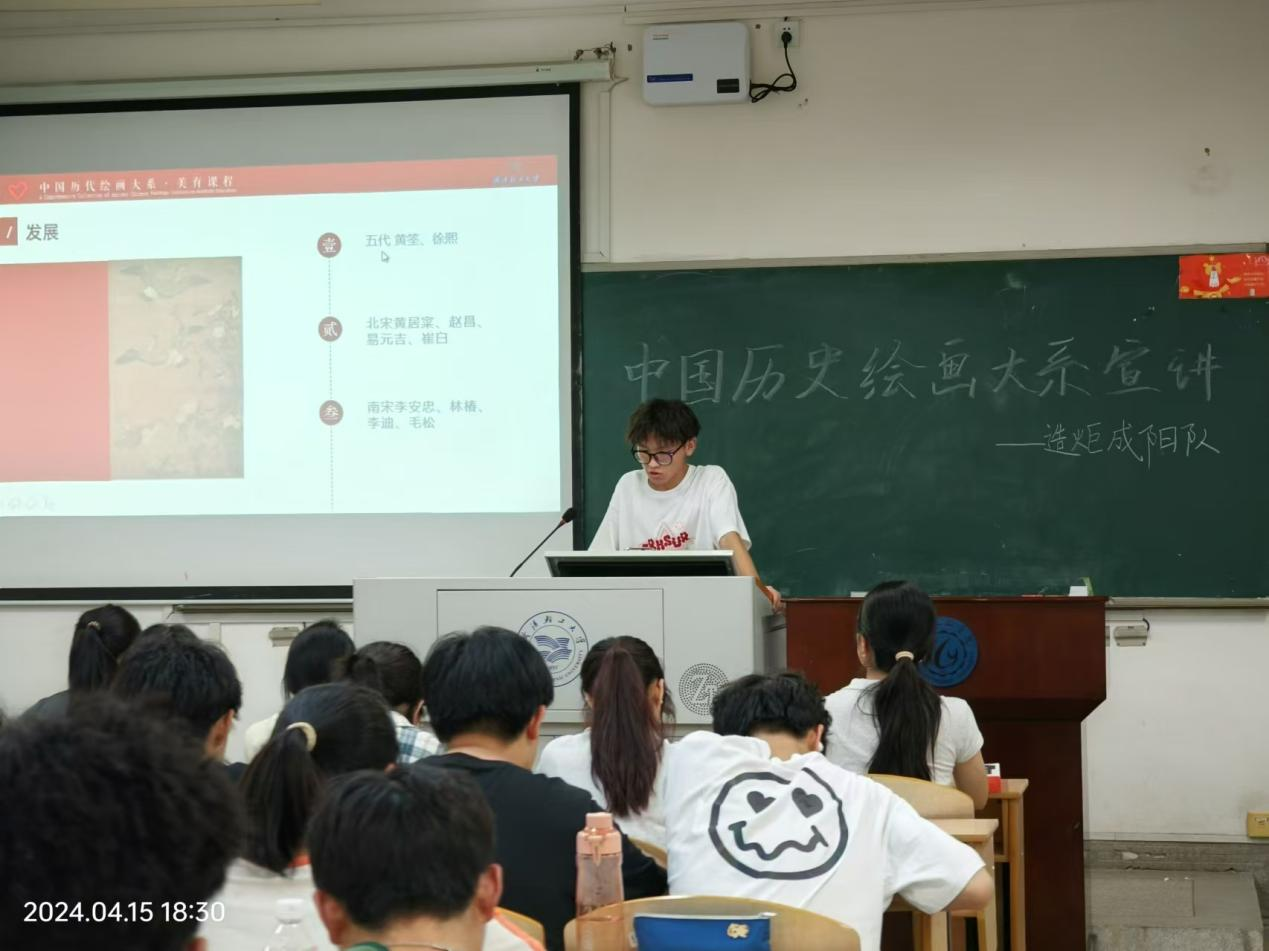 為貫徹落實(shí)習(xí)近平文化思想,深入推動(dòng)中華優(yōu)秀傳統(tǒng)文化的傳承發(fā)展,管理學(xué)院“造炬成陽(yáng)”團(tuán)隊(duì)在入選團(tuán)中央“中國(guó)歷代繪畫大系”全國(guó)大學(xué)生志愿宣講團(tuán)隊(duì)后,積極在校內(nèi)外開展系列宣講活動(dòng)。