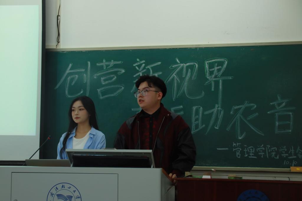為提升同學(xué)們的創(chuàng)新協(xié)作能力,激發(fā)同學(xué)們參與創(chuàng)新比賽的熱情,在2024年“長(zhǎng)江商報(bào)第21屆大學(xué)生創(chuàng)業(yè)大賽”來(lái)臨之際,管理學(xué)院于10月10日在知行樓101教室舉辦了“創(chuàng)營(yíng)新視界,青聽(tīng)助農(nóng)音”沙龍分享會(huì)。