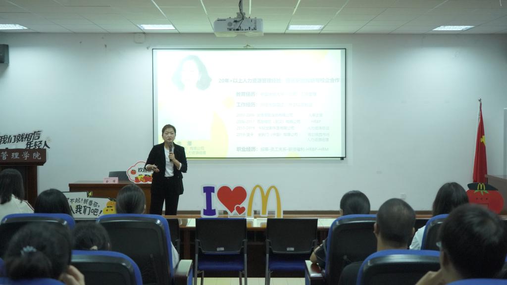 講座針對麥當勞“青年人才項目”、“菁英管培生”進行了詳細介紹。公司品牌競爭力和市場影響力,智能數(shù)字化的管理模式,吸引了眾多同學的關注,講座現(xiàn)場,座無虛席,學生們踴躍提問,就管培生選拔標準、職業(yè)發(fā)展路徑等問題與余潛經(jīng)理進行了深入交流。