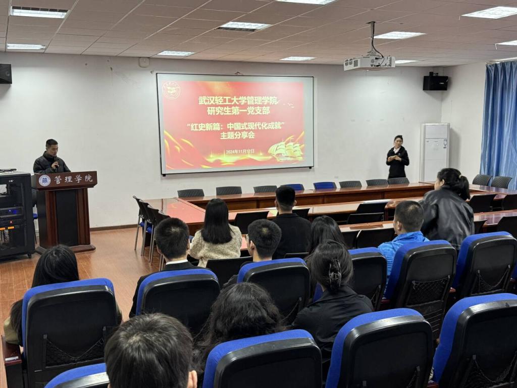 為深入學(xué)習(xí)貫徹習(xí)近平新時(shí)代中國(guó)特色社會(huì)主義思想,全面貫徹黨的二十大及黨的二十屆二中、三中全會(huì)精神,不斷提高管理學(xué)院研究生黨支部建設(shè)質(zhì)量,強(qiáng)化研究生黨支部政治功能和組織功能,教育引導(dǎo)廣大研究生堅(jiān)定馬克思主義信仰、中國(guó)特色社會(huì)主義信念、中華民族偉大復(fù)興信心,立報(bào)國(guó)強(qiáng)國(guó)大志向、做挺鷹擔(dān)當(dāng)奮斗者。管理學(xué)院研究生第一黨支部于2024年11月11日至11月17日成功舉辦以“青春向黨守初心,矢志報(bào)國(guó)擔(dān)使命”紅色主題周系列活動(dòng)。本次活動(dòng)圍繞“紅史新篇:中國(guó)式現(xiàn)代化成就”主題分享會(huì)、“憶苦思甜,傳承有我”趣味紅色知識(shí)競(jìng)賽及“紅色武漢·英雄城市”精品線路研學(xué)三個(gè)板塊展開,旨在通過形式多樣、內(nèi)容豐富的活動(dòng),引導(dǎo)研究生黨員深入學(xué)習(xí)黨的歷史,傳承紅色基因,激發(fā)愛國(guó)情懷,勇?lián)鷷r(shí)代使命。