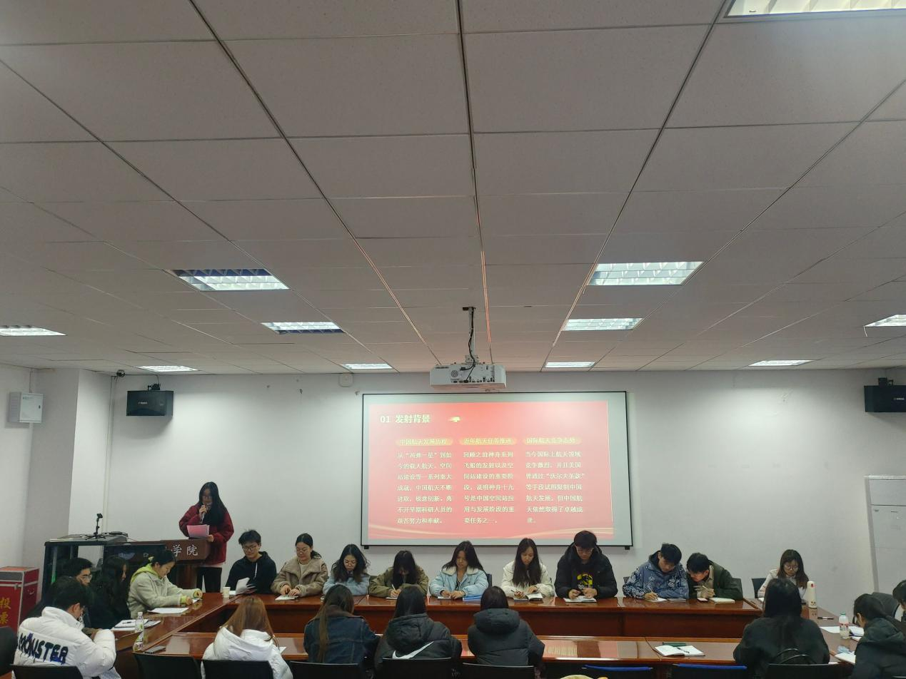10月30日04時27分,神舟十九號載人飛船在酒泉衛(wèi)星發(fā)射中心成功發(fā)射,開啟太空探索新征程。為聆聽時代跫音,發(fā)揚(yáng)航天精神,進(jìn)一步提升學(xué)生骨干的工作能力和綜合素質(zhì),11月29日,管理學(xué)院組織青馬工程學(xué)生骨干在文管樓421會議室進(jìn)行學(xué)生骨干培訓(xùn)活動。會議由團(tuán)委學(xué)生會成員李靜怡主持。