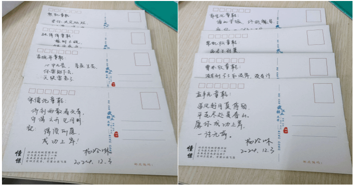 學(xué)院為每一位考研學(xué)子準(zhǔn)備了精美的考研學(xué)習(xí)禮包和手寫(xiě)明信片,暖心的禮物讓考研學(xué)子的心中倍感溫暖。老師們?cè)诎l(fā)放禮包的同時(shí),還親切地與學(xué)子們交流,詢問(wèn)他們的備考情況、目標(biāo)院校以及生活上的需求,鼓勵(lì)同學(xué)們在最后的沖刺階段要始終保持積極向上的樂(lè)觀態(tài)度,調(diào)整好心態(tài),合理規(guī)劃飲食作息。