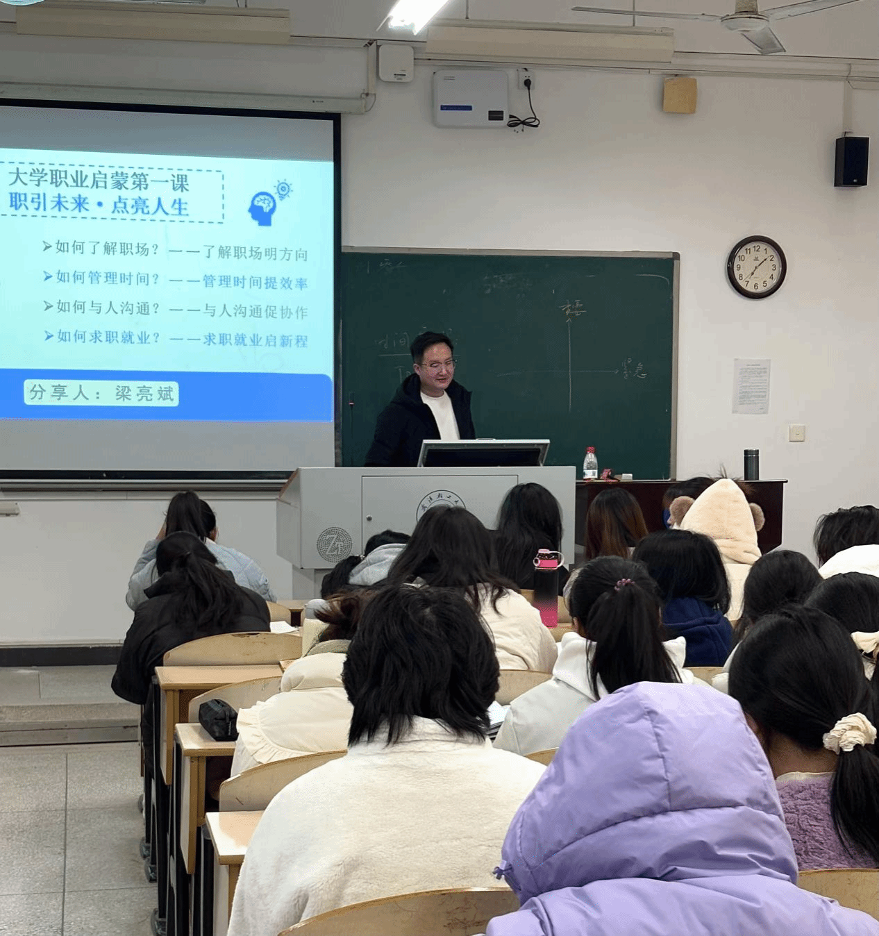講座內(nèi)容包括職場了解、時間管理、與人溝通、求職就業(yè)四個方面,梁亮斌以自身經(jīng)歷為案例,結(jié)合豐富的經(jīng)驗,深入剖析了當前就業(yè)形勢和市場需求。他強調(diào),在日益激烈的就業(yè)競爭中,學生不僅要具備扎實的專業(yè)技能,更要注重培養(yǎng)自身的綜合素質(zhì)和創(chuàng)新能力。同時,他還分享了一些實用的求職技巧,比如如何在面試中脫穎而出、如何進行有效的社交。