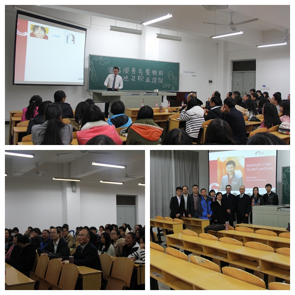 11月12日下午,上海漕河涇萬麗酒店餐飲部經(jīng)理丁偉銘受邀前來我校,在金銀湖校區(qū)文管樓216教室為旅游管理系學(xué)生進(jìn)行了酒店服務(wù)與餐飲行業(yè)概述及職業(yè)建議方面的主題講座。經(jīng)濟(jì)與管理學(xué)院副院長(zhǎng)杜為公,旅游管理專業(yè)教研室全體老師及旅游管理系學(xué)生參加了本次講座。