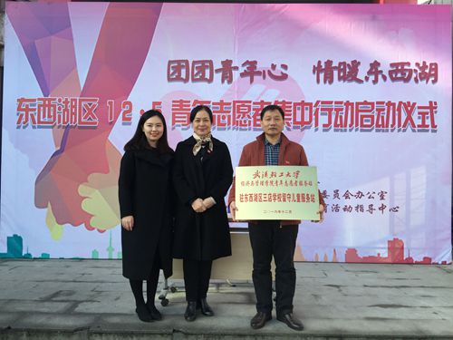 12月5日上午,從東西湖區(qū)“團(tuán)團(tuán)青年心,情暖東西湖”12.5國(guó)際志愿者日活動(dòng)啟動(dòng)儀式上傳來喜訊,武漢輕工大學(xué)經(jīng)濟(jì)與管理學(xué)院志愿服務(wù)隊(duì)駐三店學(xué)校關(guān)愛留守兒童服務(wù)站正式啟動(dòng),東西湖區(qū)副區(qū)長(zhǎng)趙琴芳給我校青年志愿者現(xiàn)場(chǎng)授牌。