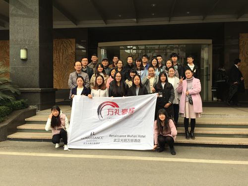 11月29日下午1:00,在萬(wàn)豪基金會(huì)萬(wàn)禮豪程項(xiàng)目的周到協(xié)調(diào)下,我院旅游管理專業(yè)1401班25名本科生在羅偉、黃猛、程叢喜三位老師的帶領(lǐng)下前往武漢光明萬(wàn)麗酒店進(jìn)行了酒店認(rèn)知參觀。