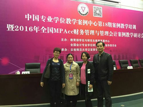 2016年11月16-17日,中國(guó)專業(yè)學(xué)位教學(xué)案例中心第18期案例教學(xué)培訓(xùn)暨2016年全國(guó)MPAcc財(cái)務(wù)管理與管理會(huì)計(jì)案例教學(xué)研討會(huì)在美麗的春城昆明云南師范大學(xué)泛亞商學(xué)院舉行。我院邢慧茹、張國(guó)華、張旭波、范麗霞四位老師參加了此次案例研討會(huì)。