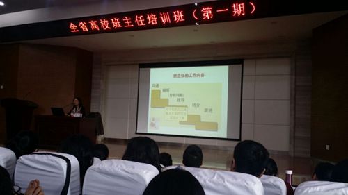 該培訓(xùn)采取專題報告和業(yè)務(wù)培訓(xùn)相結(jié)合的方式進行,分別開展了“準(zhǔn)確把握大學(xué)生特點,不斷創(chuàng)新班主任工作”、“大學(xué)生誠信教育與引導(dǎo)”、“架起心靈的橋梁”三個專題報告和“班團建設(shè)”、“心理健康教育”兩項業(yè)務(wù)培訓(xùn),同時進行了“湖北省十佳班主任”的經(jīng)驗分享活動,我校湖北省十佳班主任宋少云教授進行了“做學(xué)生永遠的摯友”的分享。