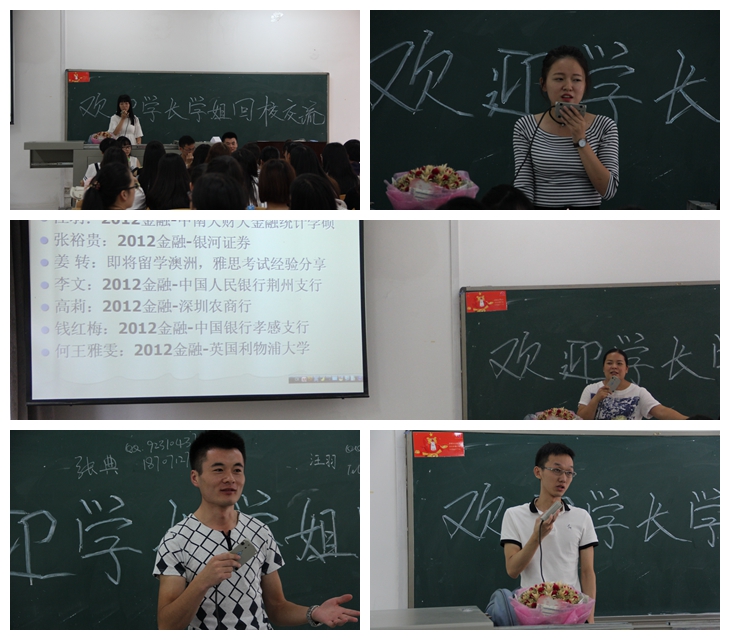 我院金融專(zhuān)業(yè)2012級(jí)畢業(yè)生與在校2013、2014、2015級(jí)學(xué)生交流會(huì)于9月10日上午10:00-12:00在文管樓208舉行,交流會(huì)內(nèi)容涵蓋出國(guó)、考研、就業(yè)求職等多個(gè)方面。本次活動(dòng)由邢慧茹老師主持,2012級(jí)優(yōu)秀畢業(yè)生張典、王雪、汪羽以及張?jiān)YF參加了此次活動(dòng)。