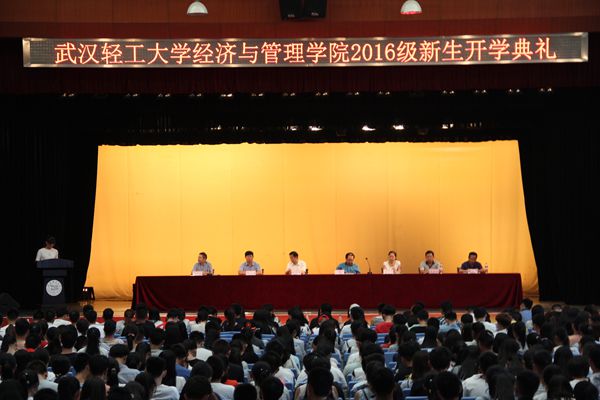 8月31日下午,武漢輕工大學(xué)經(jīng)濟(jì)與管理學(xué)院2016級新生開學(xué)典禮在大學(xué)生活動(dòng)中心隆重召開。學(xué)院院長祁華清、黨委書記劉紅紅、副院長楊孝偉、龍子午、副院長杜為公、教師代表張維華老師出席本次大會(huì),大會(huì)由黨委副書記孟三愛主持。