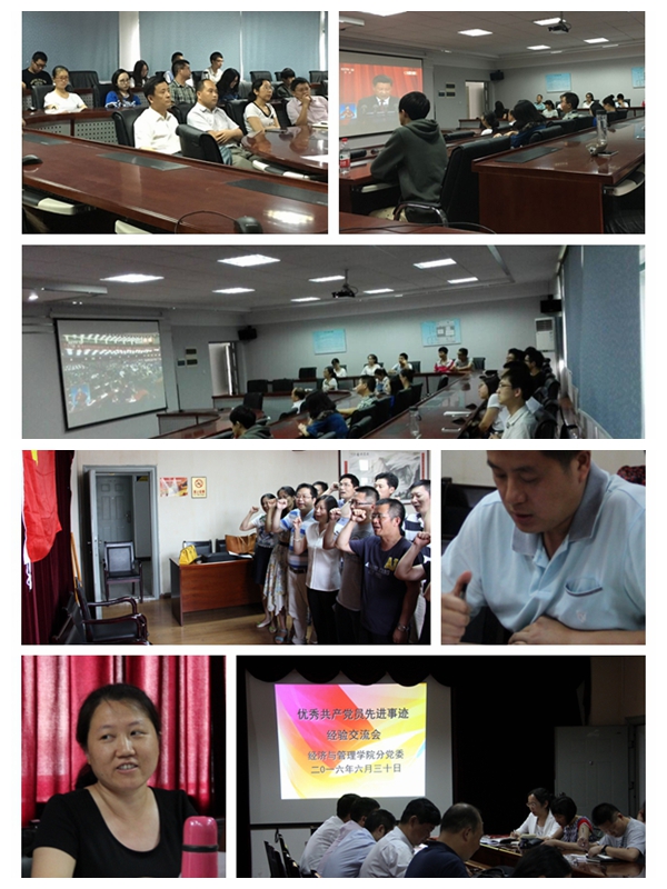 7月1日,是中國共產(chǎn)黨建黨95周年華誕。為紀(jì)念好黨的生日,經(jīng)管學(xué)院分黨委結(jié)合“兩學(xué)一做”學(xué)習(xí)教育,以支部主題黨日、先進(jìn)事跡交流會、重溫入黨誓詞、集中收看慶祝大會等各種形式開展了隆重的紀(jì)念活動。