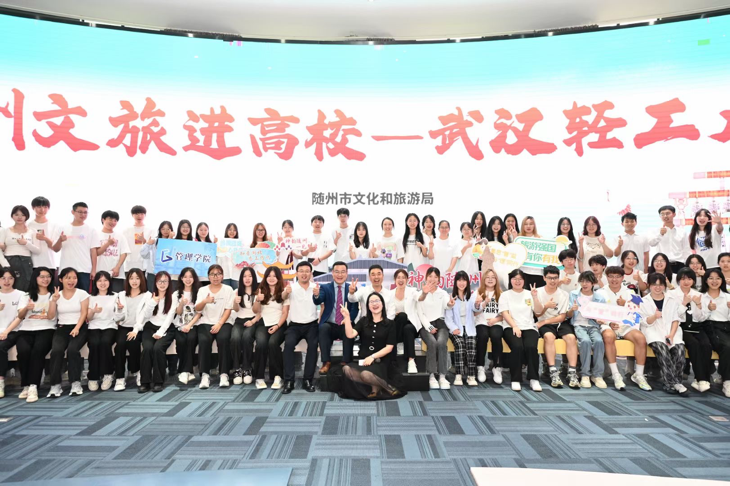 5月30日,為深入貫徹落實習(xí)近平總書記對加快建設(shè)旅游強國、推動旅游業(yè)高質(zhì)量發(fā)展作出的重要指示,一場別開生面的文旅盛宴在武漢輕工大學(xué)上演。作為“隨州文旅進(jìn)高校”活動的首站,隨州市文化和旅游局局長解偉一行來到金銀湖校區(qū),與我校師生共話文旅發(fā)展新趨勢。此次活動由現(xiàn)代文旅產(chǎn)業(yè)學(xué)院院長郭田田主持,管理學(xué)院領(lǐng)導(dǎo)及300余名師生代表參加。