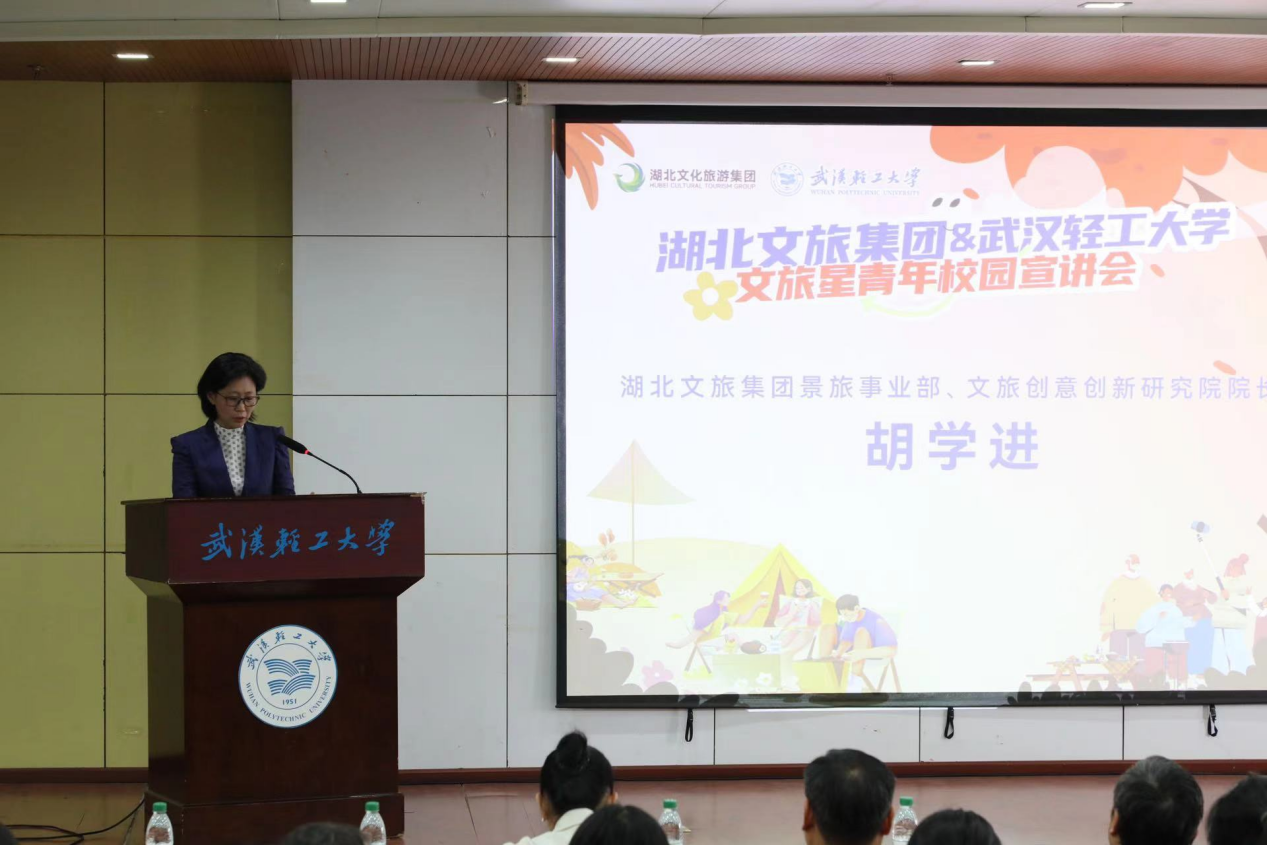 胡學(xué)進(jìn)對(duì)我校的熱情接待表示衷心感謝。她在講話(huà)中提到,湖北文旅集團(tuán)作為主業(yè)突出、資產(chǎn)優(yōu)良、運(yùn)轉(zhuǎn)規(guī)范、核心競(jìng)爭(zhēng)力強(qiáng)的國(guó)有控股旅游集團(tuán)和旅游產(chǎn)業(yè)的龍頭企業(yè),將以此次校企合作為契機(jī),發(fā)揮行業(yè)優(yōu)勢(shì),與武漢輕工大學(xué)一同推動(dòng)文旅產(chǎn)教融合,提升文旅行業(yè)的人才密度和質(zhì)量,更好適應(yīng)文旅發(fā)展新趨勢(shì)。