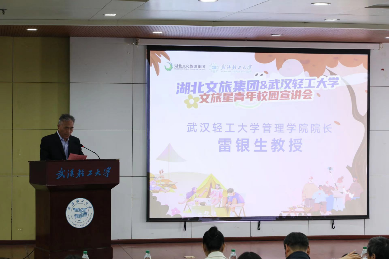 為進(jìn)一步深化校企合作,推動(dòng)文旅產(chǎn)業(yè)與教育資源的有機(jī)融合,10月24日下午,武漢輕工大學(xué)與湖北文旅集團(tuán)校企合作簽約儀式暨湖北文旅星青年成長(zhǎng)計(jì)劃宣講會(huì)在金銀湖校區(qū)恒青圖書(shū)館舉行。湖北文旅集團(tuán)景旅運(yùn)營(yíng)事業(yè)部總經(jīng)理、文旅創(chuàng)意創(chuàng)新研究院院長(zhǎng)胡學(xué)進(jìn),湖北省海外旅游(集團(tuán))有限公司總經(jīng)理林凱,湖北海外商務(wù)會(huì)展有限公司總經(jīng)理?xiàng)羁?/span>,部分景區(qū)代表,我校管理學(xué)院黨委書(shū)記房桂兵、院長(zhǎng)雷銀生、副院長(zhǎng)黃猛及師生代表參加會(huì)議。會(huì)議由我校現(xiàn)代文旅產(chǎn)業(yè)學(xué)院院長(zhǎng)郭田田主持。