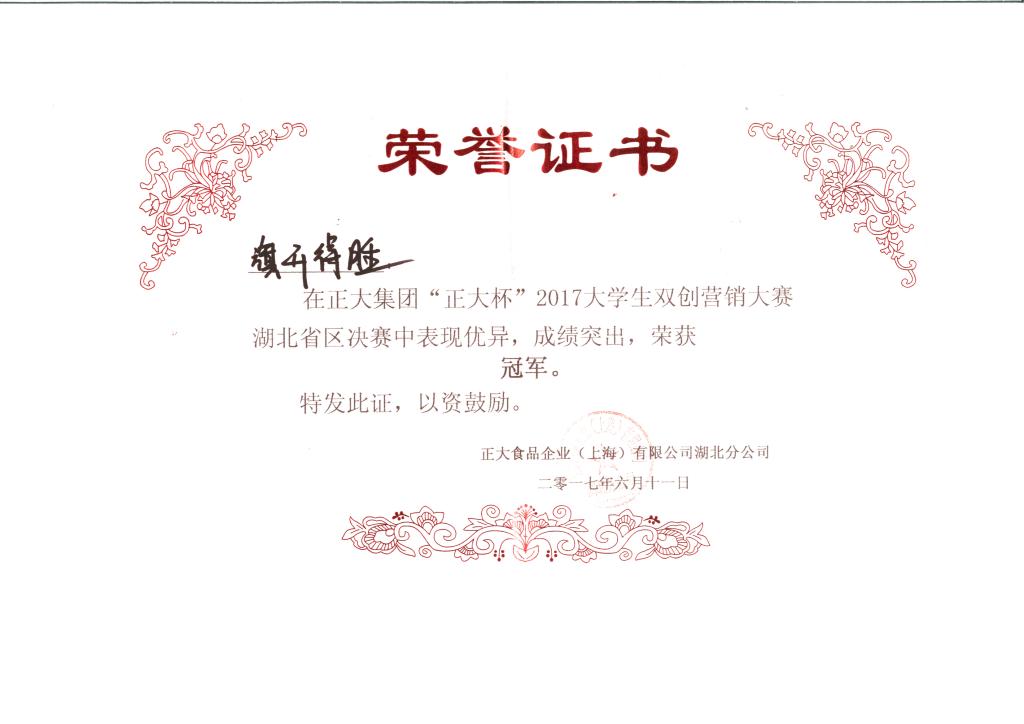 6月11日,“正大杯 ”2017大學(xué)生雙創(chuàng)營銷大賽湖北賽區(qū)總決賽在華中農(nóng)業(yè)大學(xué)大學(xué)生活動中心隆重開賽。省委青年就業(yè)創(chuàng)業(yè)促進(jìn)中心、湖北省楚天同創(chuàng)工程聯(lián)合辦公室、正大集團(tuán)等單位領(lǐng)導(dǎo)出席。來自華中農(nóng)業(yè)大學(xué)、湖北工業(yè)大學(xué)、武漢輕工大學(xué)等高校的省內(nèi)八強(qiáng)團(tuán)隊參加角逐,最終代表學(xué)校參賽的我院“旗開得勝隊”以44281元的銷售額和93.4分的高分,斬獲湖北區(qū)總決賽冠軍。