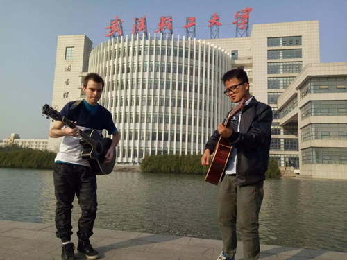 吳:開心最重要啊。我們在學長空間里也看到過和外國友人一起彈唱的視頻呢。我們知道外國文化和中國有很大差異,那學長和外國朋友相處時有沒有發(fā)現(xiàn)他們身上不一樣的特質(zhì)或者是值得學習的地方呢?