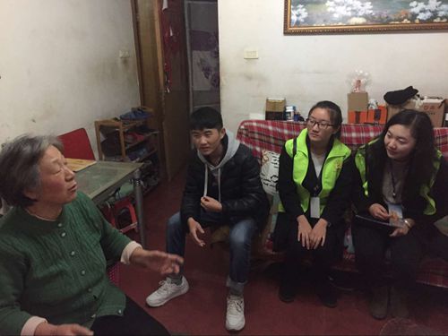 在探訪過程中,社區(qū)曾婆婆家的經(jīng)歷讓志愿者們印象深刻。曾婆婆腿前不久患上殘疾,已經(jīng)有半年沒有出門,與老伴生活,子女都在外地打工,家庭經(jīng)濟(jì)情況不是很好。志愿者們到達(dá)曾婆婆的家中之后,發(fā)現(xiàn)曾婆婆心情低落,我院志愿者們熱情與她聊天,情緒低落的曾婆婆慢慢與志愿者們熟絡(luò)起來,也開始講起了自己的年輕時候的趣事,漸漸的屋內(nèi)充滿了歡樂溫暖的氣氛……