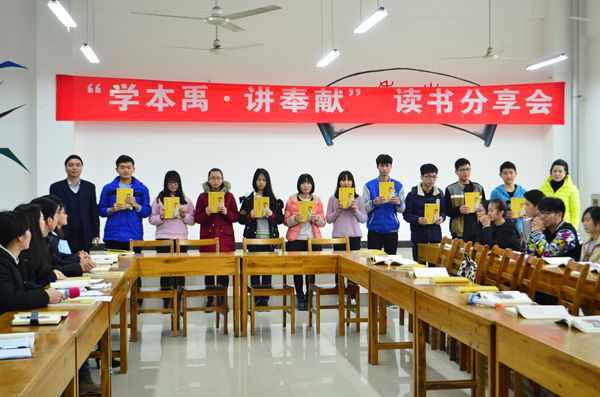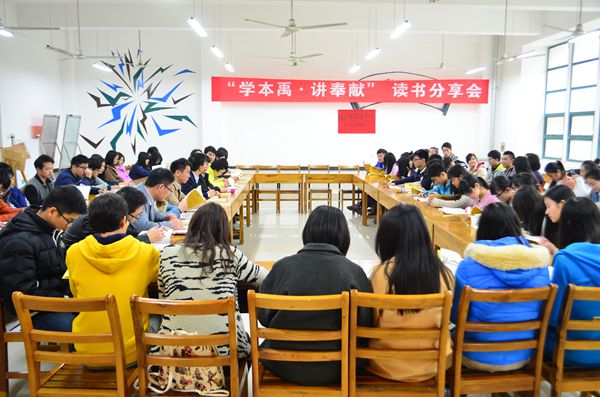 根據(jù)團(tuán)省委下發(fā)的《 關(guān)于以“百生講壇”為載體開展“學(xué)本禹· 講奉獻(xiàn)”為主題活動(dòng)的通知》文件精神,由武漢輕工大學(xué)校團(tuán)委組織、經(jīng)管學(xué)院管理類1505團(tuán)支部參與的“學(xué)本禹,講奉獻(xiàn)”讀書分享會(huì)活動(dòng)于3月17日下午在金銀湖校區(qū)大學(xué)生活動(dòng)中心二樓“青年之家”順利開展。