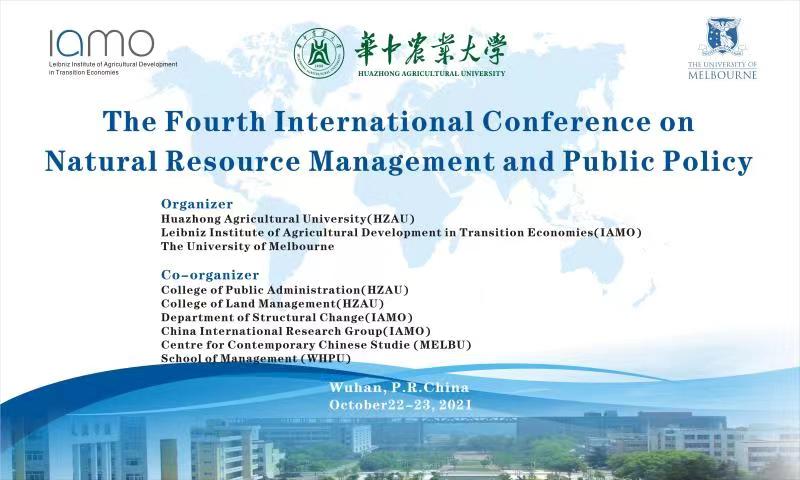 “第四屆自然資源管理與公共政策國際研討會”將于10.22-10.23日線上舉行,此次研討會由華中農(nóng)業(yè)大學(xué)(Huazhong Agricultural University, HZAU)、德國萊布尼茨轉(zhuǎn)型經(jīng)濟(jì)農(nóng)業(yè)發(fā)展研究所 (Leibniz Institute for Agricultural Development in Transformation Economies, IAMO)、澳大利亞墨爾本大學(xué) (The University of Melbourne)主辦。我院是聯(lián)合承辦方之一,學(xué)院將有五位老師(陳彩云、鄧梅娥、杜江、李娟、馬艷)參加23日的分論壇匯報(bào),其中,上午一位老師,下午四位老師。此次聯(lián)合承辦國際研討會并參與分論壇匯報(bào),是我院在學(xué)術(shù)研究方面向國際接軌作出的嘗試,請大家能夠關(guān)注并為參會老師加油,謝謝!