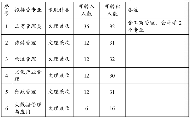 表1 管理學(xué)院2023級轉(zhuǎn)專業(yè)計(jì)劃表