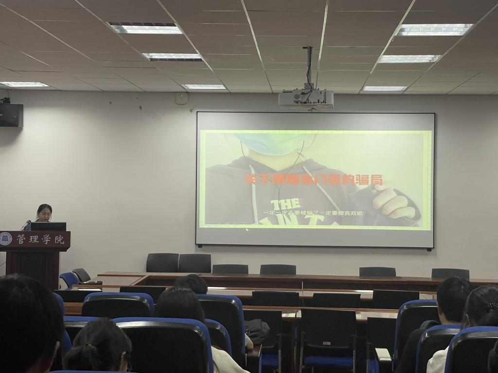 為進(jìn)一步提升學(xué)生的防詐騙意識(shí)和能力,共同構(gòu)建網(wǎng)絡(luò)安全防線。管理學(xué)院琳姐說(shuō)法工作室于2024年4月16日下午6點(diǎn)在知行樓(原文管樓)421會(huì)議室成功舉辦以“世界在變,謹(jǐn)防被騙”為主題的防詐騙宣講活動(dòng),此次宣講活動(dòng)邀請(qǐng)湖北山河律師事務(wù)所專職律師孫藝娜為主講嘉賓。