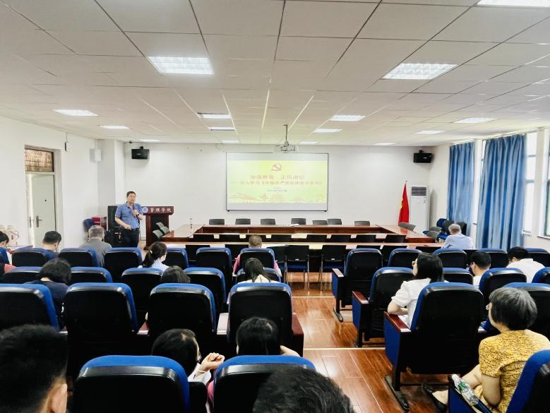 為深入學(xué)習(xí)貫徹習(xí)近平總書記關(guān)于加強(qiáng)黨的紀(jì)律教育的重要論述,推動(dòng)黨紀(jì)學(xué)習(xí)教育入腦入心,5月23日下午,管理學(xué)院黨委書記房桂兵以“加強(qiáng)教育 正風(fēng)肅紀(jì)”為題,為全院教職工講授了一堂黨紀(jì)學(xué)習(xí)的專題黨課。