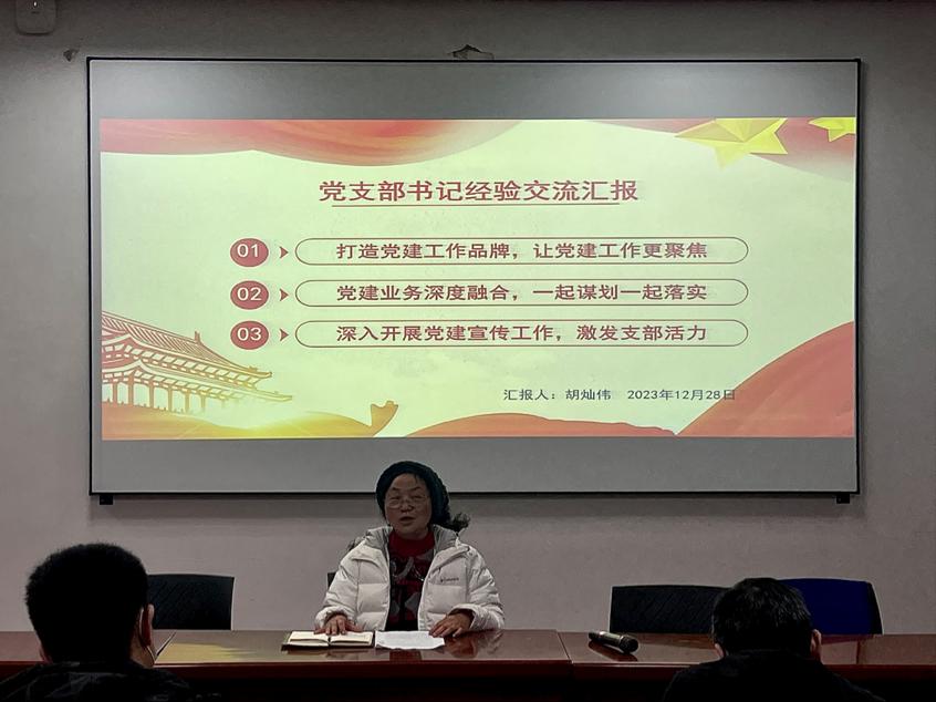教工第三黨支部書記胡燦偉作經(jīng)驗交流,主要從三個方面闡述黨支部書記加強黨建的方法:一是打造黨建工作品牌,讓黨建工作更聚焦。二是黨建業(yè)務(wù)深度融合,一起謀劃一起落實。三是深入開展黨建宣傳工作,激發(fā)支部活力。