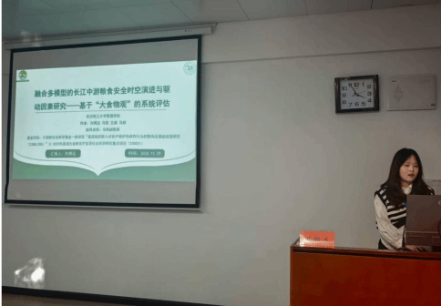 馬艷副教授指導(dǎo)指導(dǎo)的劉博遠(yuǎn)、馬璇兩位研究生在平行論壇(二)分別匯報(bào)了學(xué)術(shù)論文《融合多模型的長(zhǎng)江中游糧食安全時(shí)空演進(jìn)與驅(qū)動(dòng)因素研究——基于“大食物觀”的系統(tǒng)評(píng)估》與《生態(tài)脆弱地區(qū)農(nóng)戶保護(hù)性耕作技術(shù)采納行為的影響機(jī)制研究——基于湖北省恩施市300戶農(nóng)戶的實(shí)證》,兩篇論文聚焦糧食安全與可持續(xù)耕作技術(shù),緊扣會(huì)議主題中的生態(tài)農(nóng)業(yè)與耕地保護(hù)議題,受到與會(huì)專家好評(píng),并榮獲本次征文活動(dòng)的二、三等獎(jiǎng)。上述論文分別從宏觀區(qū)域視角和微觀農(nóng)戶行為入手,深入探討長(zhǎng)江中游糧食安全的動(dòng)態(tài)演進(jìn)、空間差異與驅(qū)動(dòng)機(jī)制,以及生態(tài)脆弱地區(qū)農(nóng)戶保護(hù)性耕作技術(shù)采納行為的影響機(jī)制,為“大食物觀”的區(qū)域?qū)嵺`、長(zhǎng)江中游生態(tài)屏障區(qū)耕地保護(hù)與農(nóng)業(yè)綠色發(fā)展提供了重要的實(shí)證支撐。
